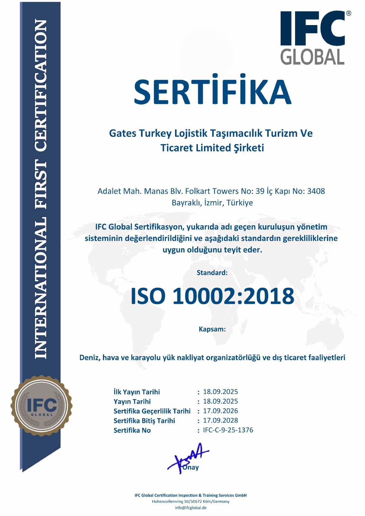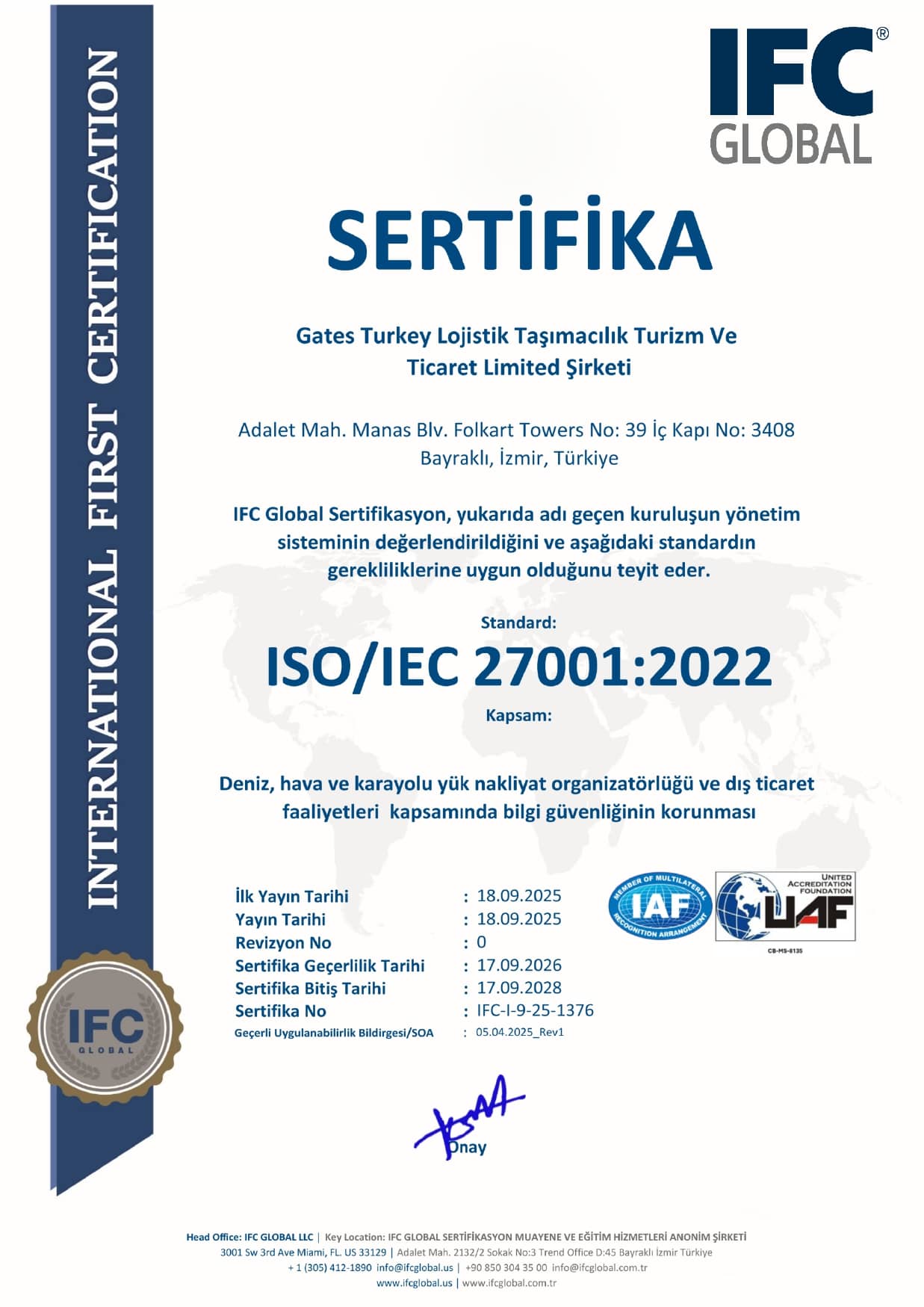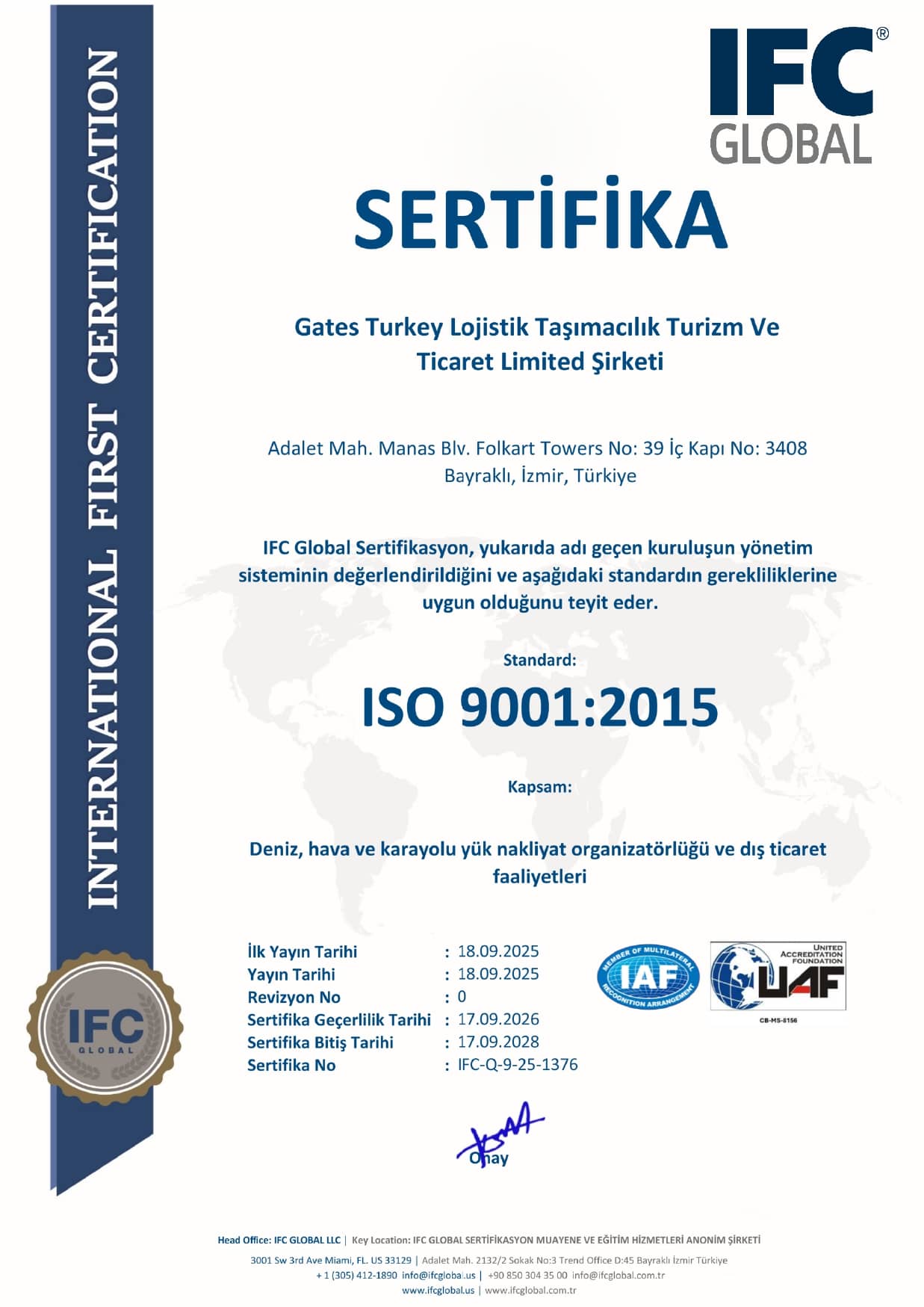 Gates Turkey, uluslararası hizmet sağlayıcısı olarak kurulmuştur.